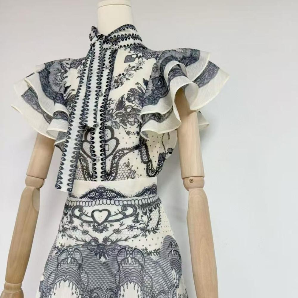 Elevate your look with this Zimmermann blouse and midi skirt set, featuring a chic set crush design and an eye-catching black and white print.