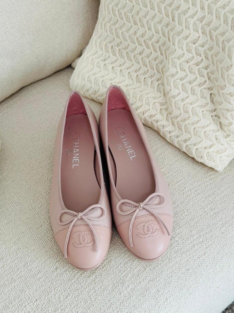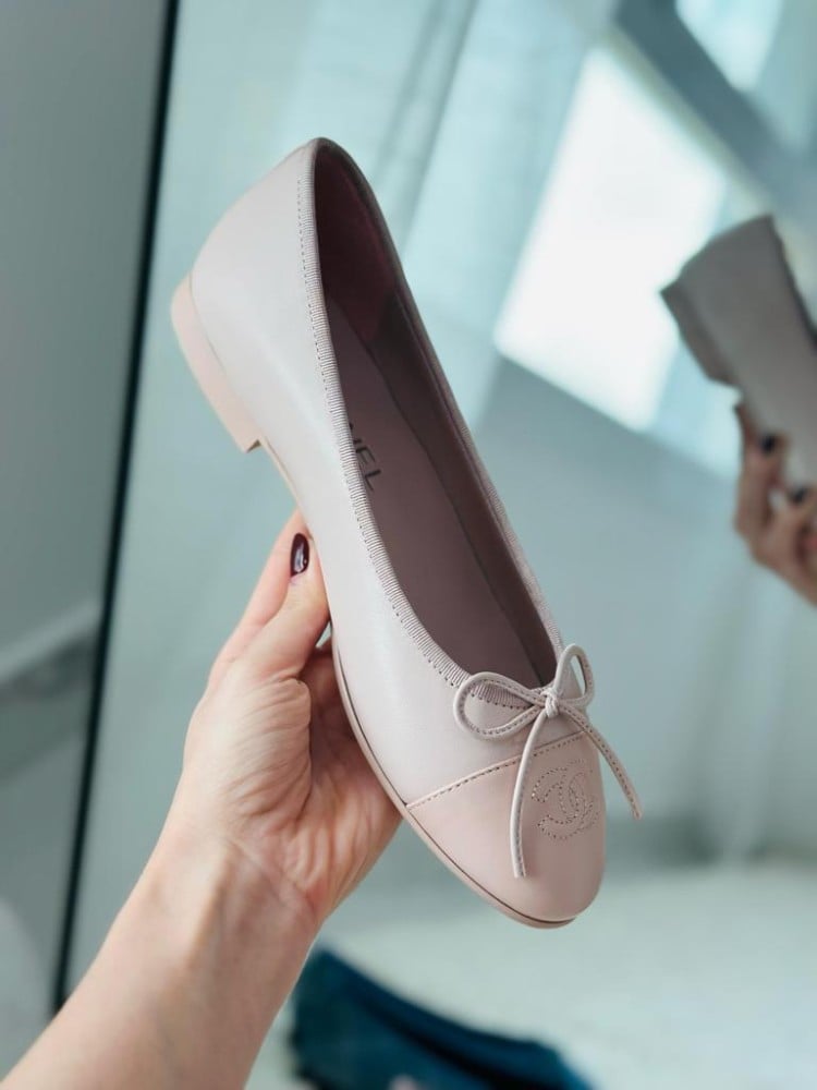 Featuring a chic and feminine design, the Chanel ballerina shoes feature a rounded toe and unique details like a bow or the iconic Chanel logo. This design adds a touch of luxury and elegance to your look.