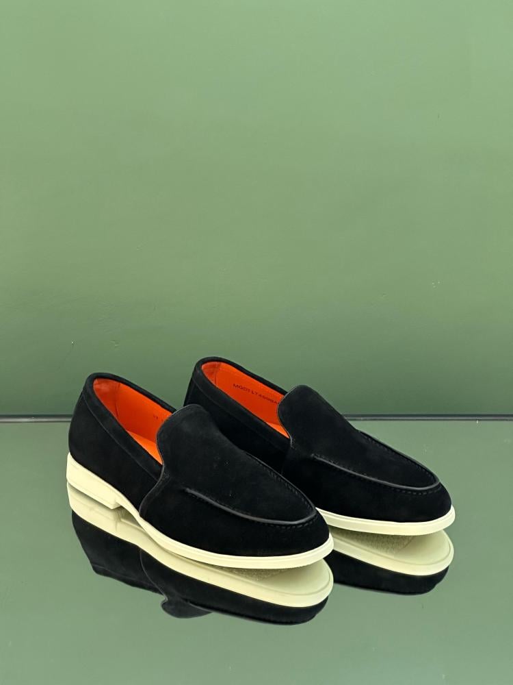 Elevate your look with these Santoni men's flat shoes, crafted from premium suede in elegant black. This design combines comfort and luxury, reflecting your refined taste with every step. Ideal for the modern man who seeks distinction.