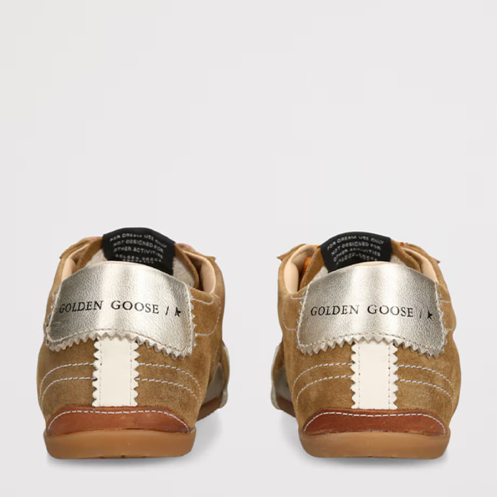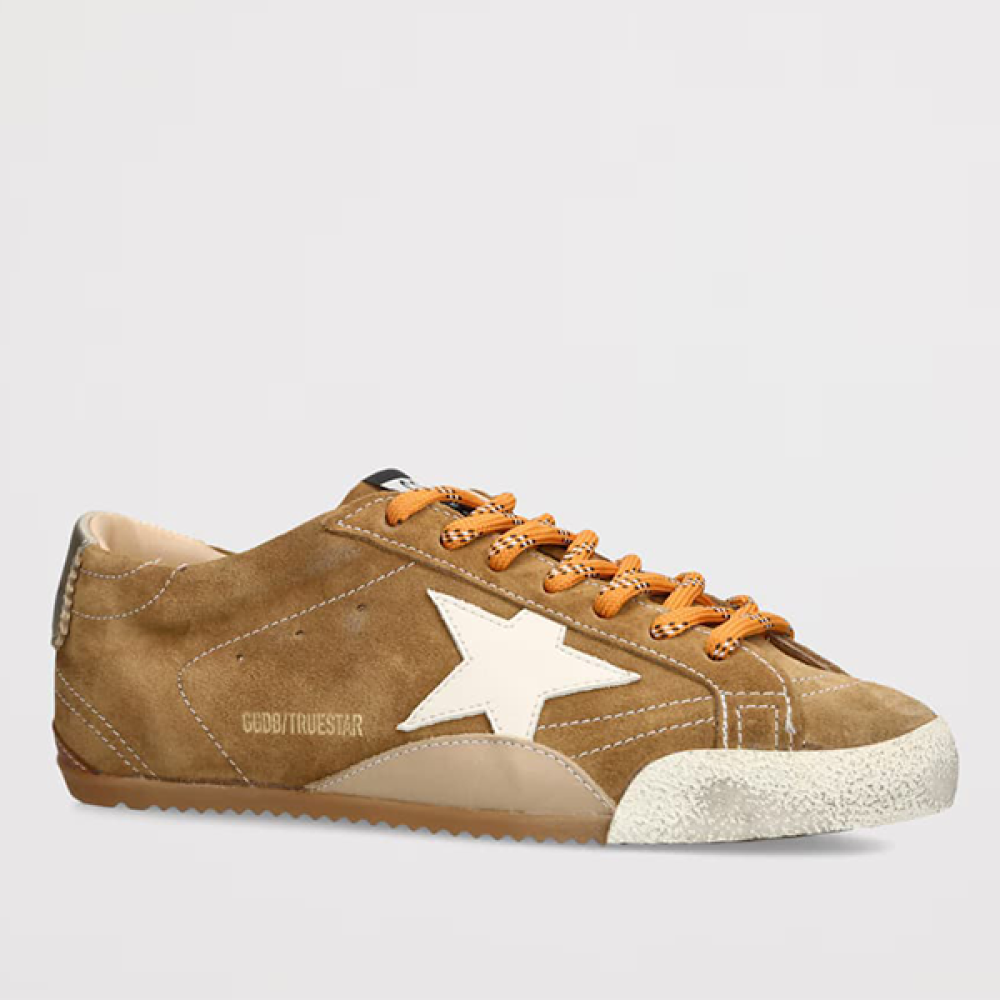 The Golden Goose True Star Velvet Brown and Orange Sneakers feature a luxurious design that combines premium velvet with vibrant orange accents.
