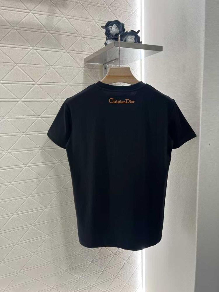 Stand out with a unique, luxurious look with Dior's embroidered women's T-shirt . The design combines elegant simplicity with intricate detailing, with delicate butterfly embroidery adding a feminine artistic touch to the luxurious black cotton fabric. Perfect for everyday outings or casual evening looks.