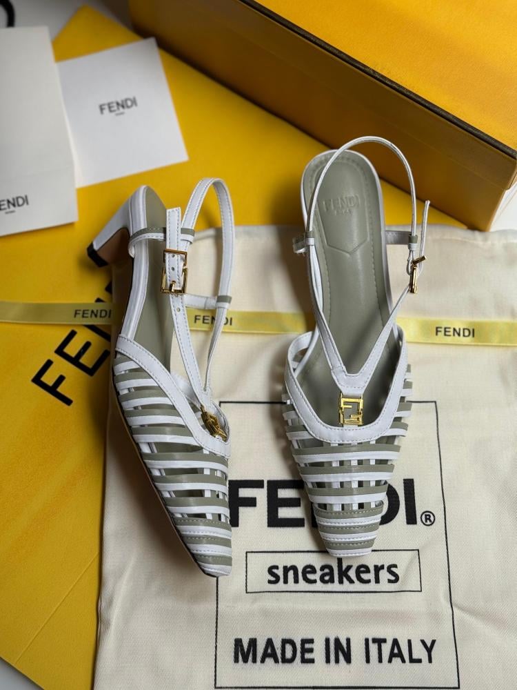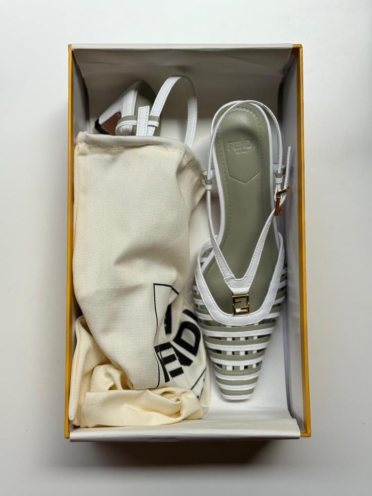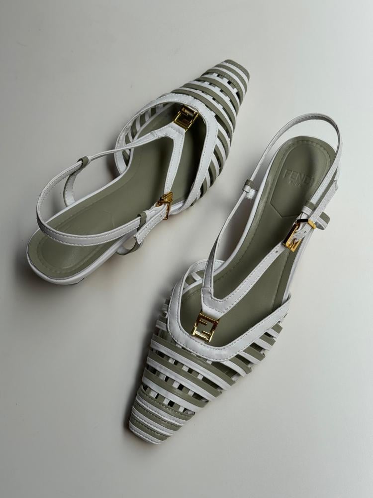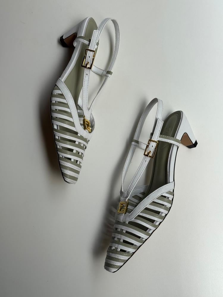 Fendi White and Pistachio Slingback Low Heel Sandal