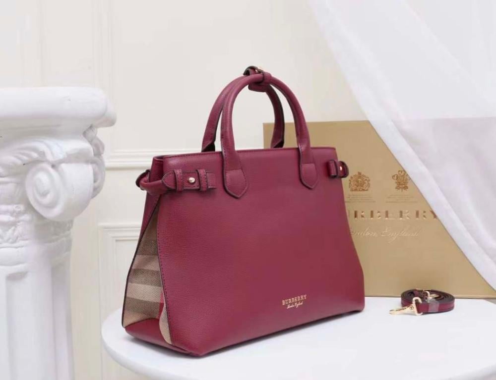 Burberry Banner Top Handle Bag with Quilted Trim in Burgundy