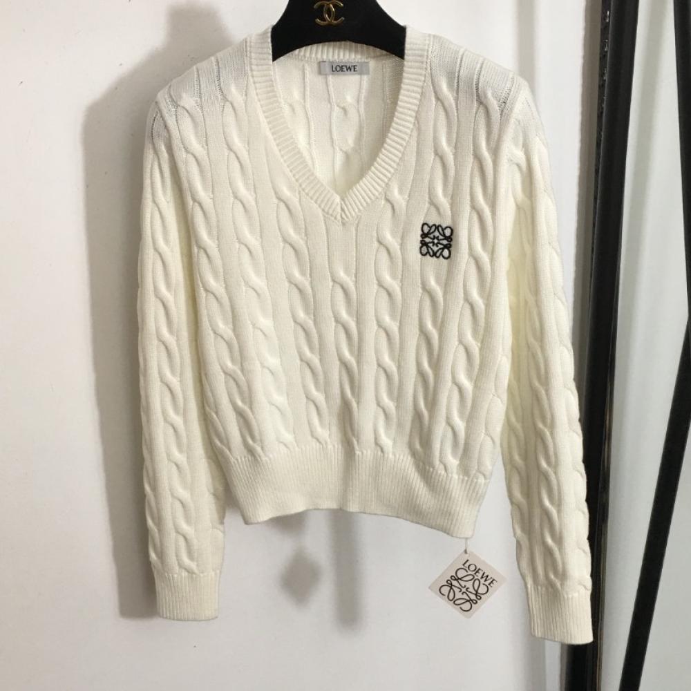 Loewe Women's Winter V-Neck Long Sleeve White Blouse