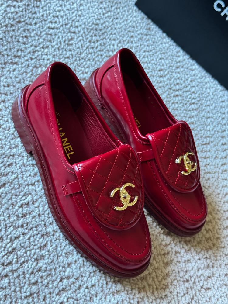 These Chanel moccasin flats for women in elegant red with a quilted cover combine elegance and comfort in one design.