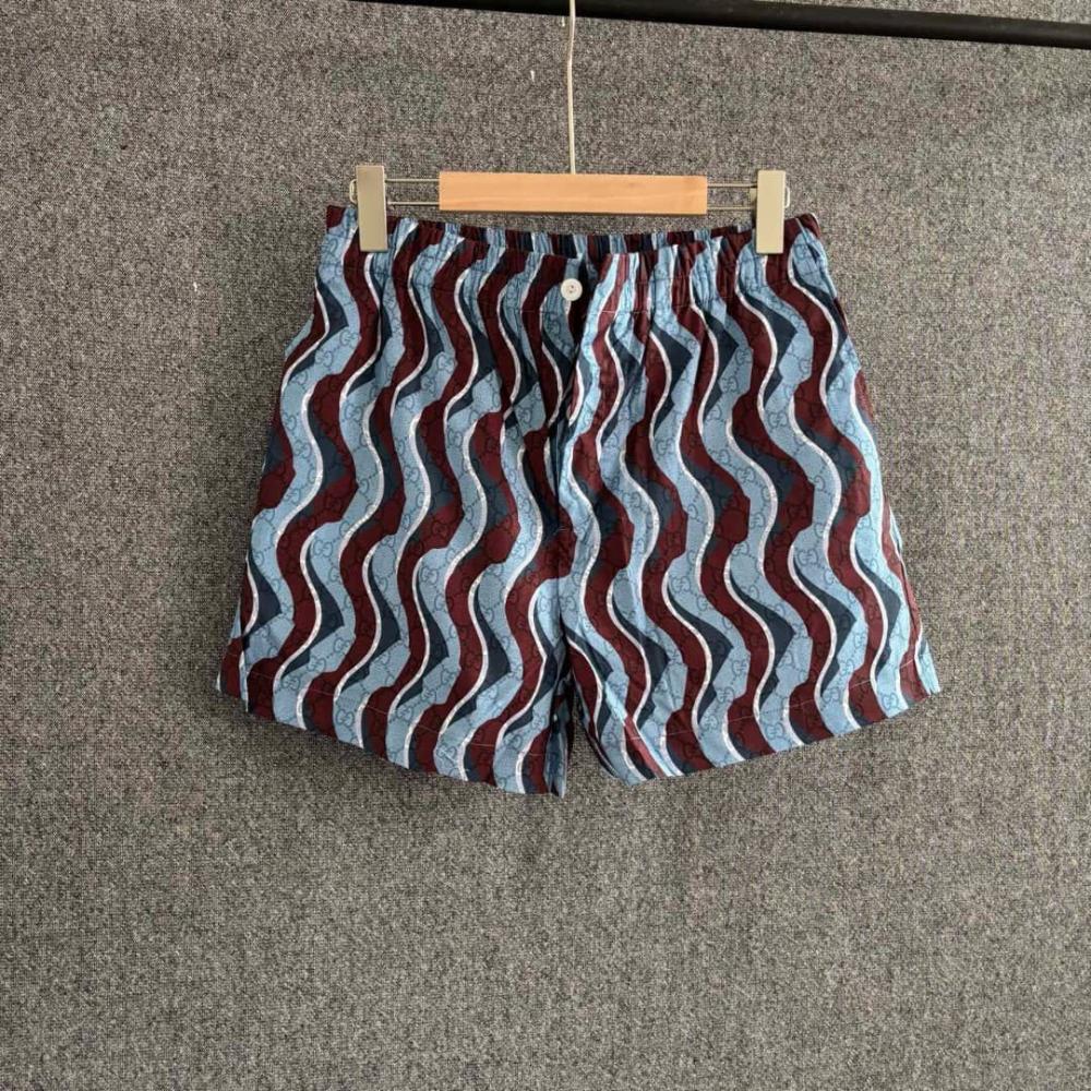 Stand out this summer with a stylish and fresh look with this men's summer shorts set from Gucci , in light blue with a burgundy hue featuring a modern, eye-catching striped design. Featuring lightweight fabric and a classic print inspired by Gucci's sophisticated spirit, it's perfect for outings, travel, or hot days.