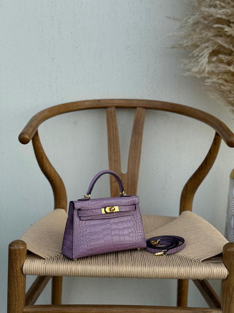Hermes Kelly Women's Small Bag 19cm Crocodile Leather Purple