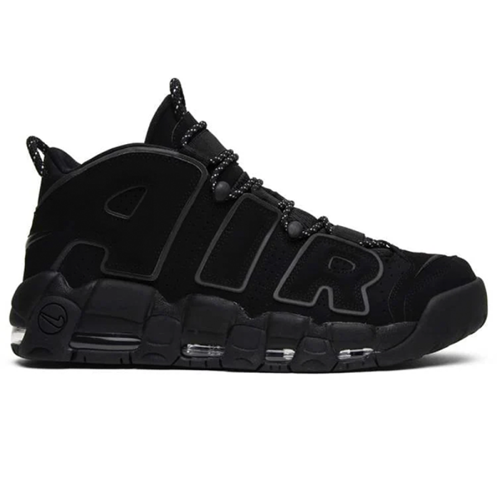 The Nike Air More Uptempo Black Reflective Shoes are a luxurious sneaker that exudes strength and uniqueness.