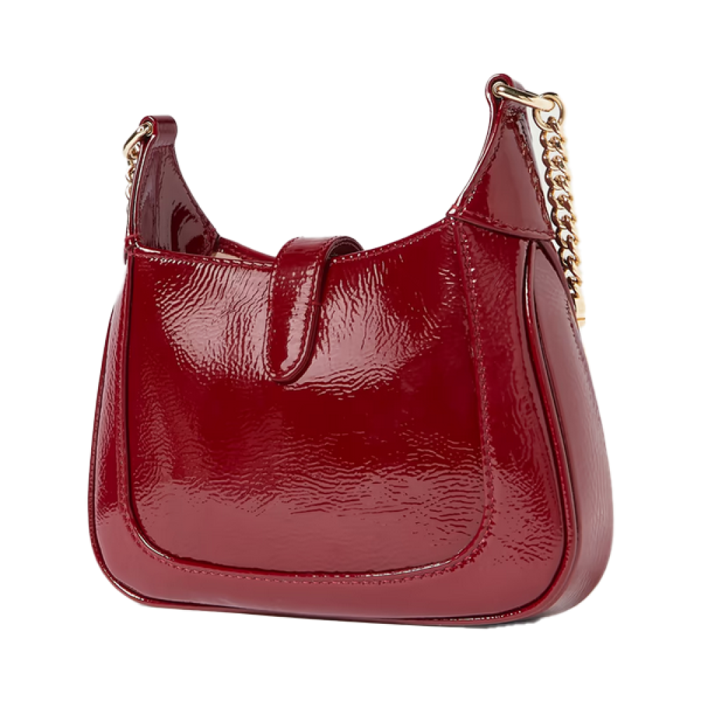 Add a touch of boldness and elegance to your look with this small Jackie zip-up bag from Gucci, measuring 19 cm and featuring a shiny red color that adds a touch of charm and femininity.