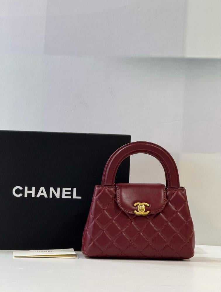 Chanel Mini Kelly Top Handle Bag in Burgundy Quilted Leather