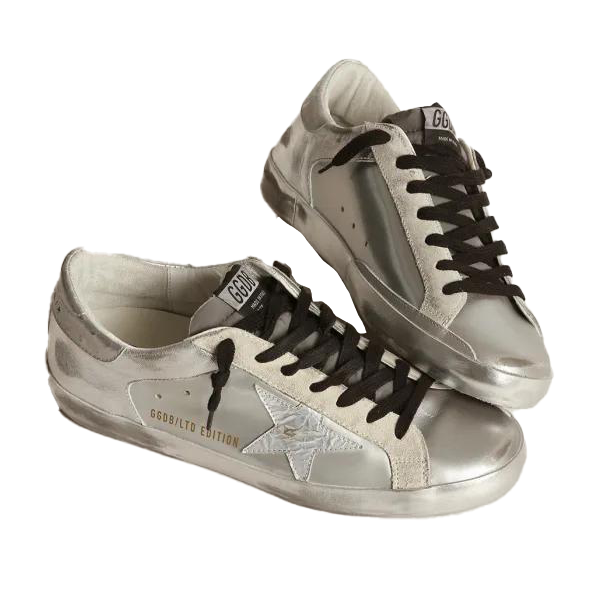 Get a touch of elegance and comfort with Golden Goose women's flat shoes in metallic silver.