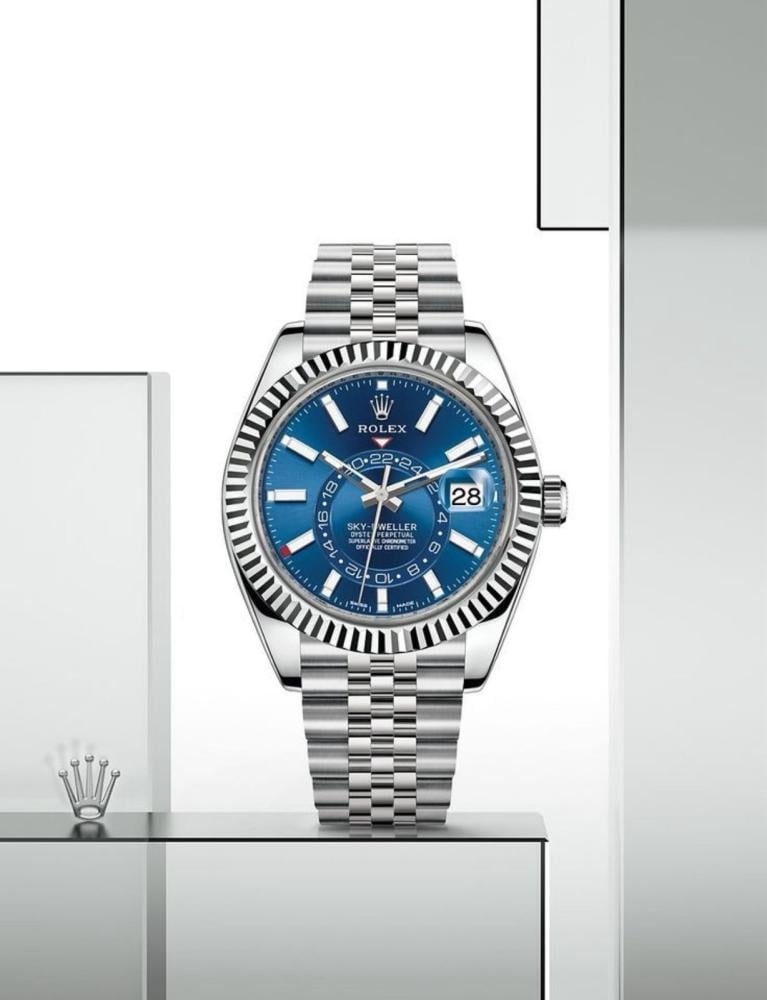Rolex Men's Silver Dweller Watch with Luxury Blue Dial