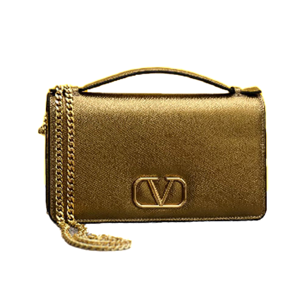 Order it now and enjoy a luxurious and distinctive look with the shiny golden Valentino bag!