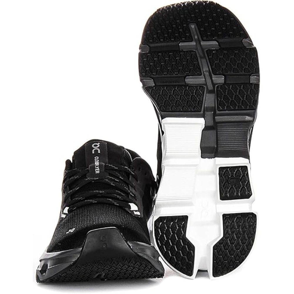 Balance performance and style with the On Running Cloud Flyer 5 Unisex Mesh Sneaker in black and white .