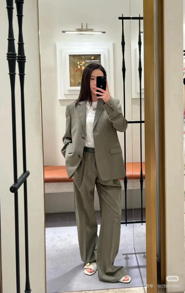 Women's formal suit, LOEWE shirt and blazer, gray