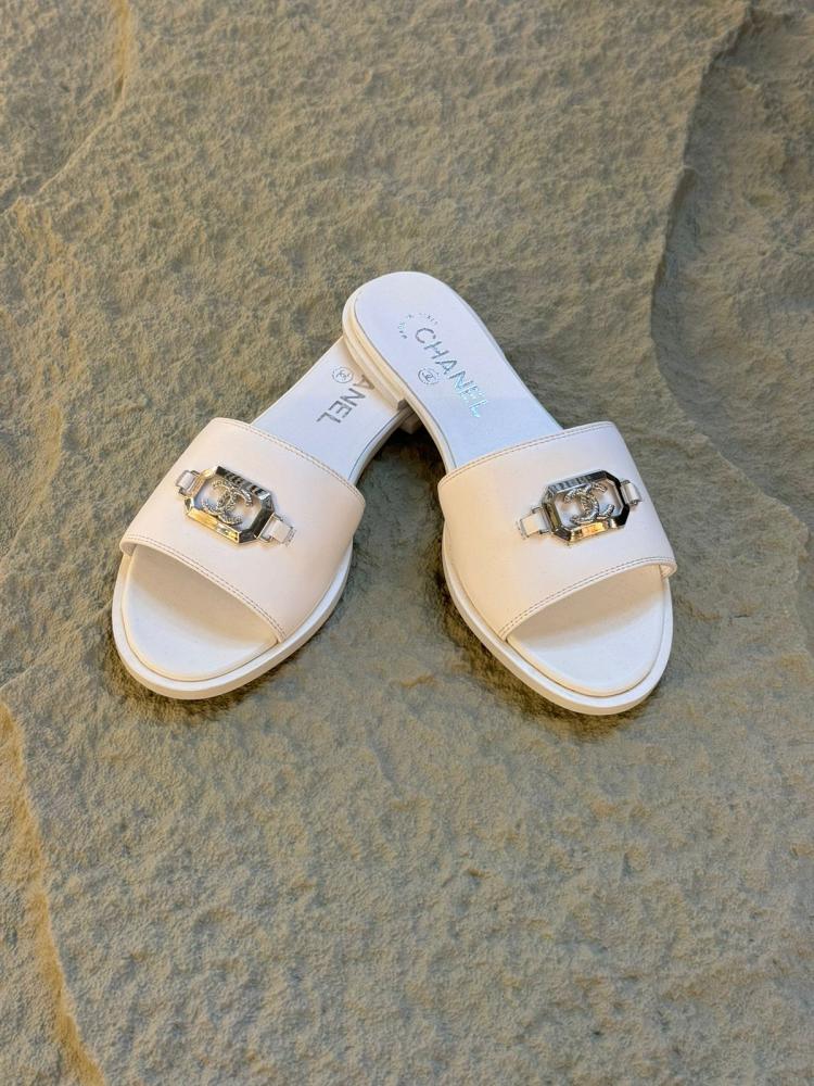 Whether you wear it with a light summer dress or with casual clothes, the white Chanel slipper adds a touch of elegance and distinction to your look.