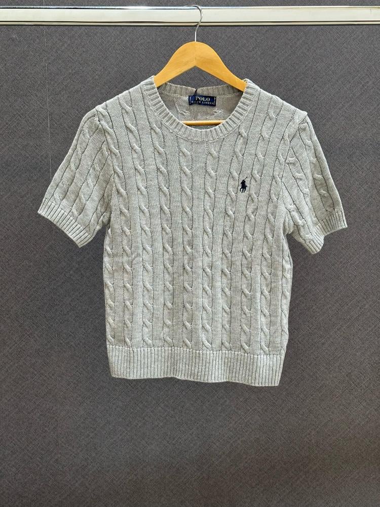 Women's Polo Neck Knitted Half Sleeve Top in Grey