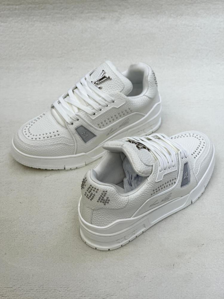 Experience elegance and comfort with these Louis Vuitton men's sneakers, which combine modern sporty design with refined luxury. These sneakers come in a pure white color, making them the perfect addition to any modern man's wardrobe seeking a blend of elegance and comfort. They feature a sporty design that's suitable for a variety of daily activities, from daily commutes to sports outings.
