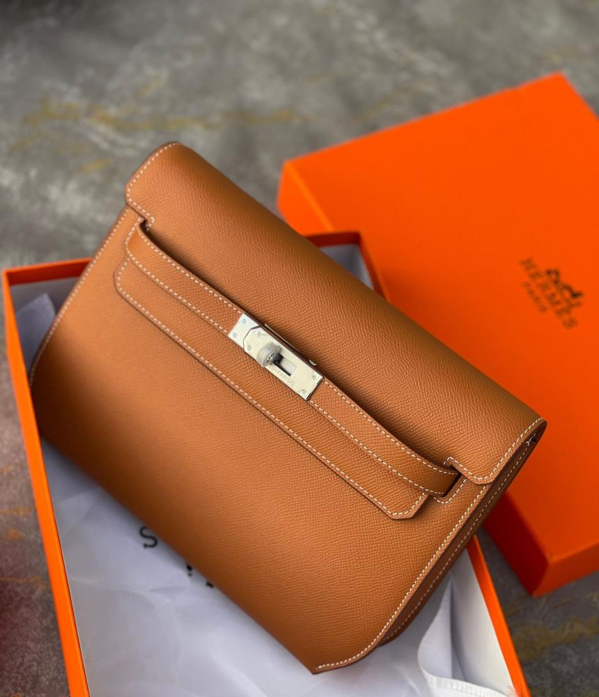 Girls, if you're looking for a piece that will add to your appeal and elegance, check out the Hermes Kelly clutch in high-quality leather in a honey color from "i7store."