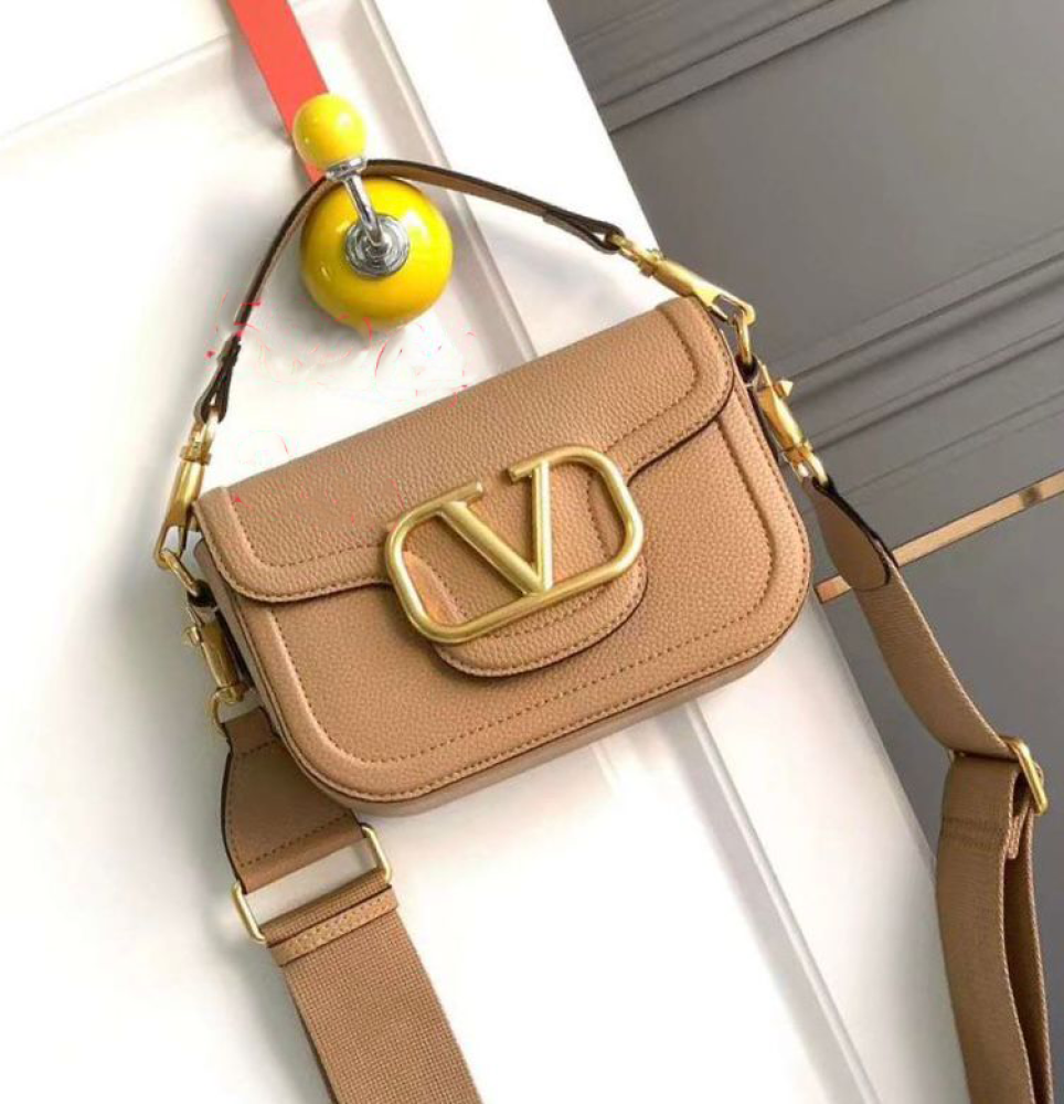 This Valentino women's small bag in luxurious beige leather with gold-tone hardware is an ideal choice for women seeking luxurious elegance down to the finest details. Its modern design with gold-tone hardware adds a touch of luxury, making it the perfect choice for special occasions and special moments.