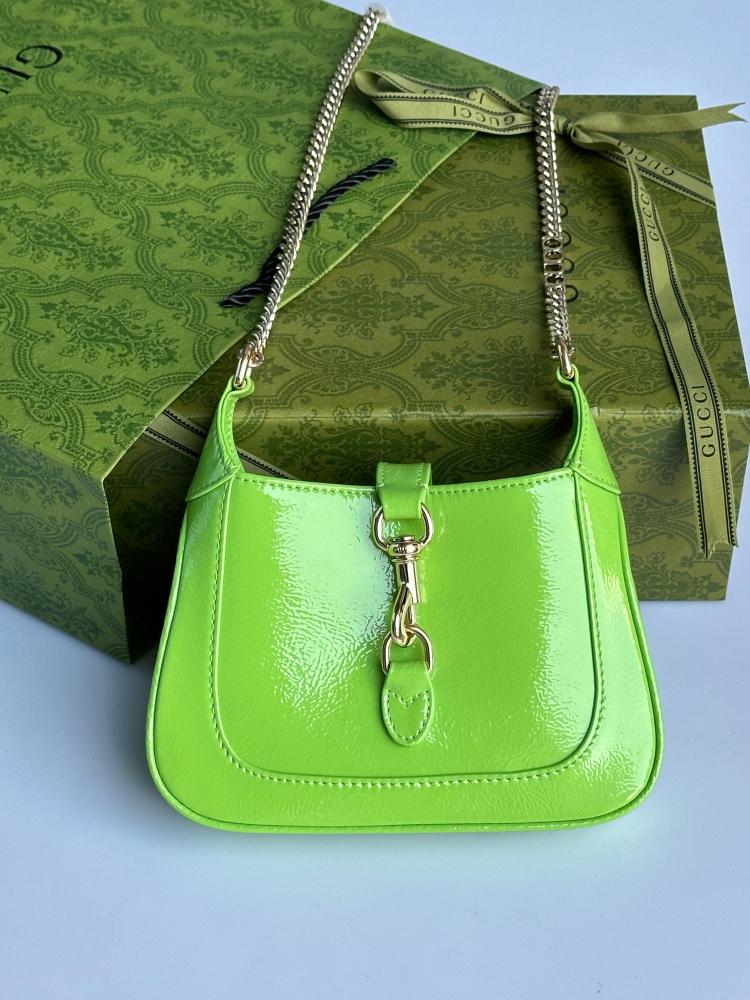 Gucci Jackie Notte Women's Shoulder Bag 19cm with Distinctive Green Chain