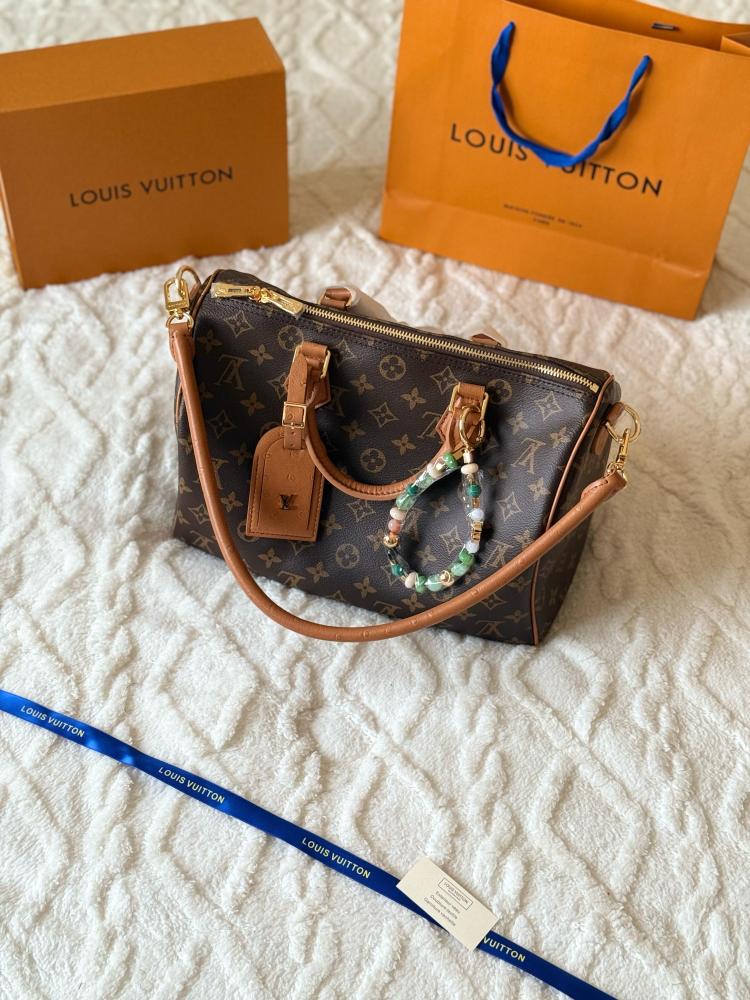 Elevate your look with this Louis Vuitton large bag , which combines practical design with iconic luxury. At 30 cm , the bag offers ample space to easily carry all your essentials. Crafted from signature brown monogram canvas , it's finished with luxurious gold-tone hardware for a sophisticated touch. Its comfortable top handles provide easy carrying, making it ideal for everyday wear or travel. This bag is a must-have in Louis Vuitton's luxury bag collection for those who love elegance.