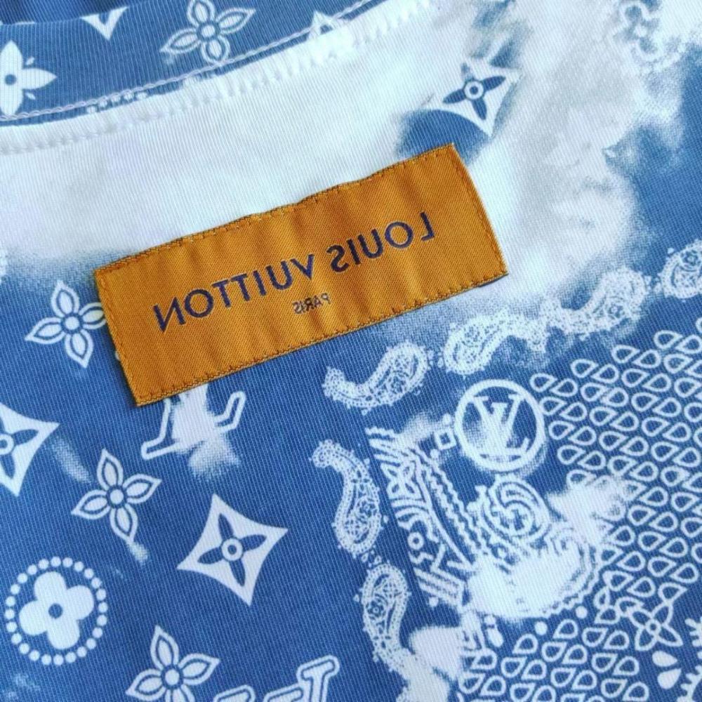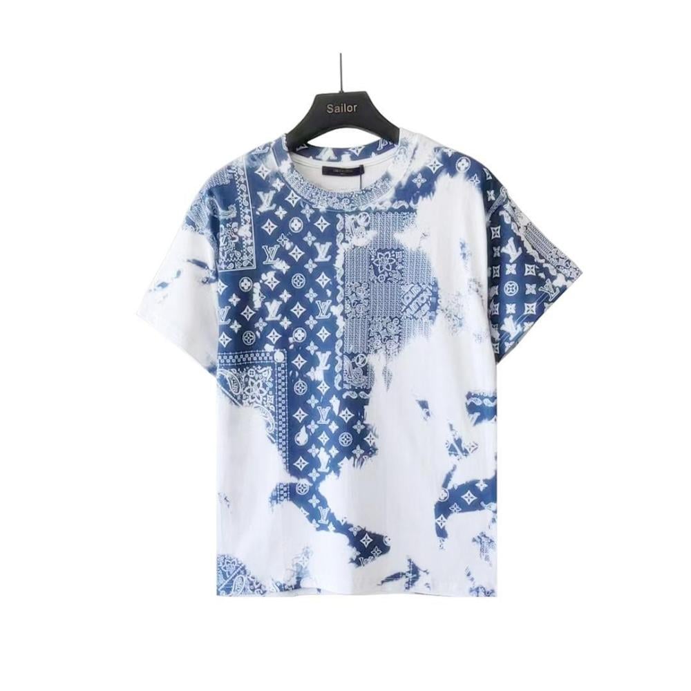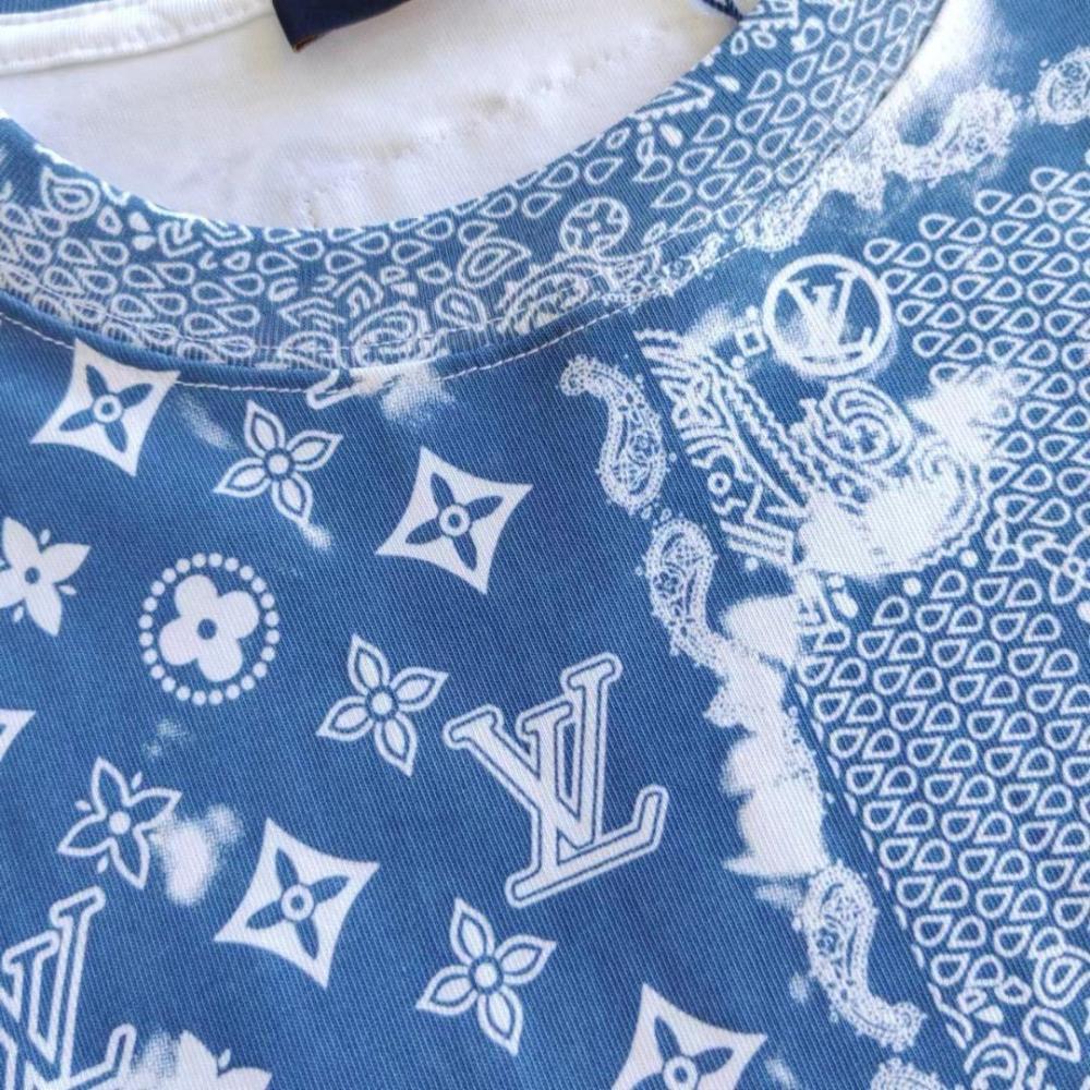 Louis Vuitton Bandana Print Monogram T-Shirt in Blue and White