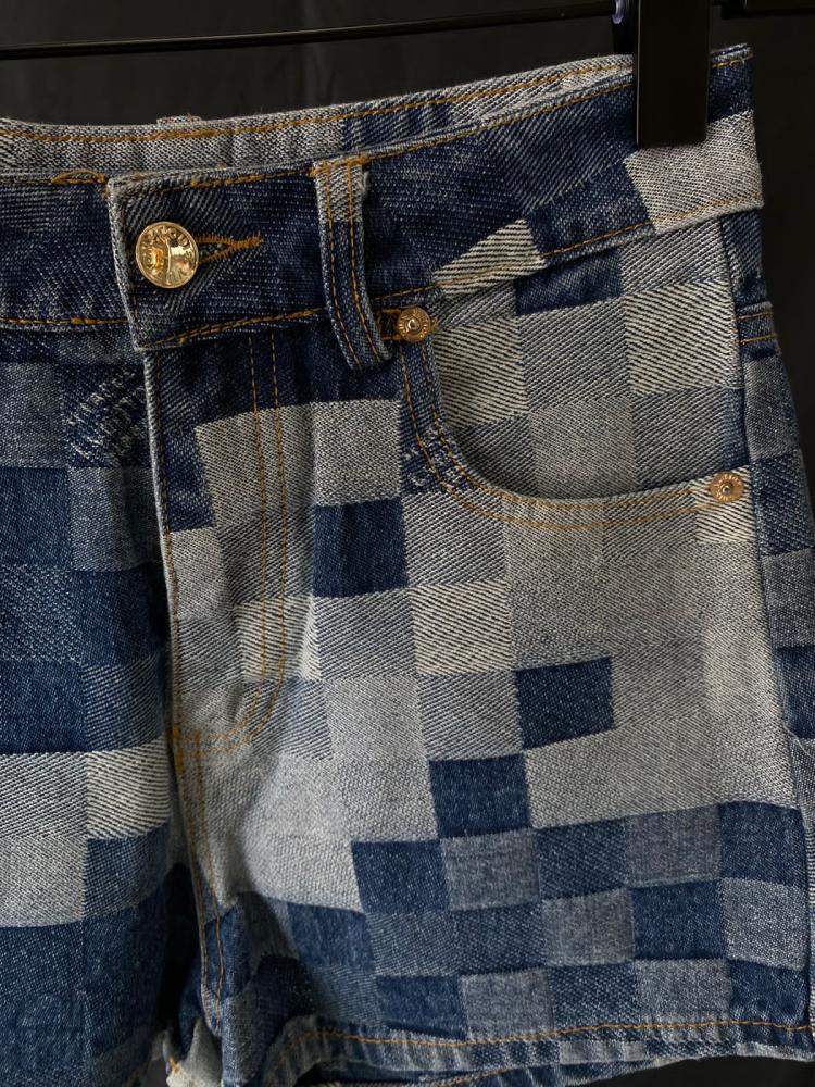 Hello and welcome to all lovers of elegance and fashion! Today, from "i7 Store," we bring you a pair of Louis Vuitton women's short denim shorts. Their unique checkered design adds a modern touch to any look.