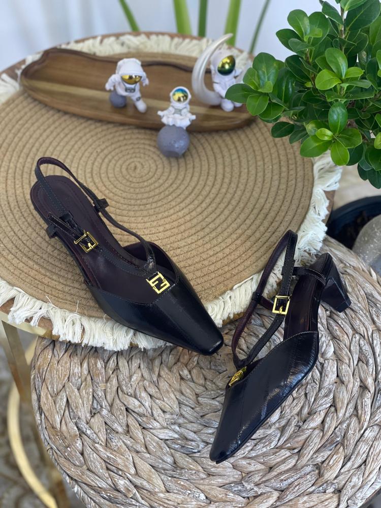 Opt for elegance and comfort with the Fendi Heels Low Back Strap Sandal in black, combining modern design with luxury in every detail. This low-heel sandal offers perfect all-day comfort, thanks to its ergonomic design and secure back strap. The classic black color adds a touch of elegance and flexibility, making it suitable for all your everyday looks and casual occasions.