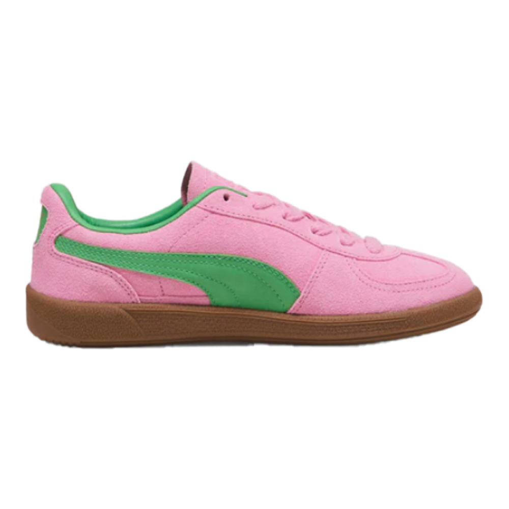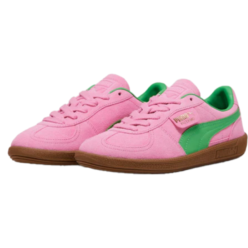 Puma Palermo unisex flat sneakers in pink with green accents, an innovative design that reflects vitality and a unique personality.