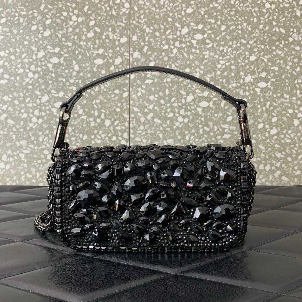 Valentino Loco Crystal Embellished Black Evening Bag Features: