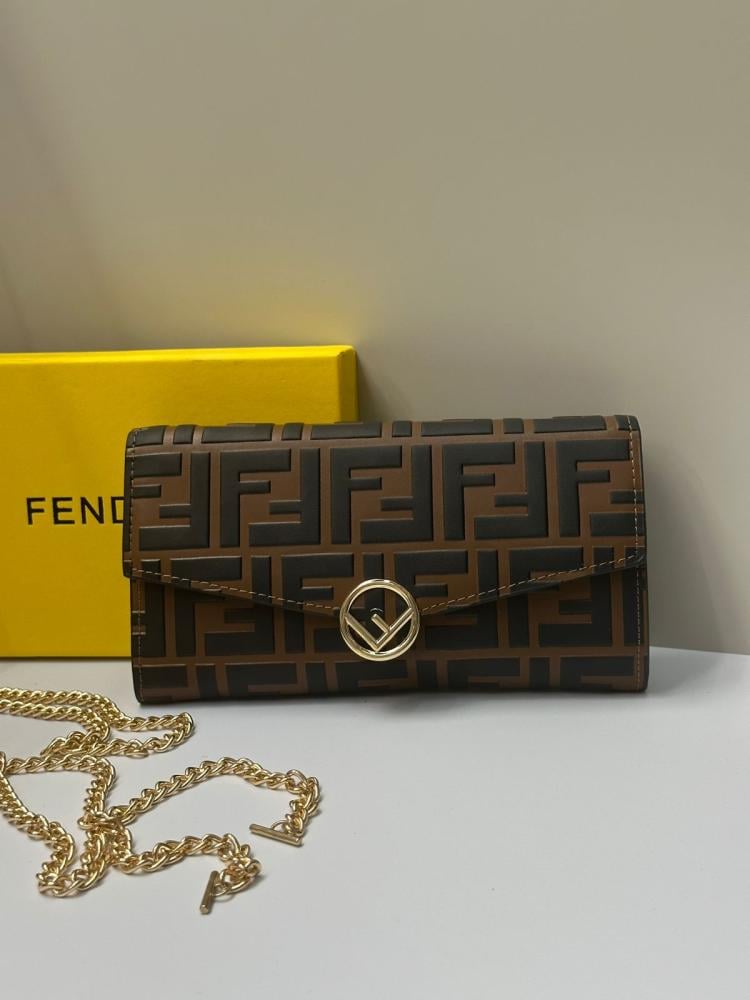 Fendi FF Motif Long Bag in Brown and Black with Chain