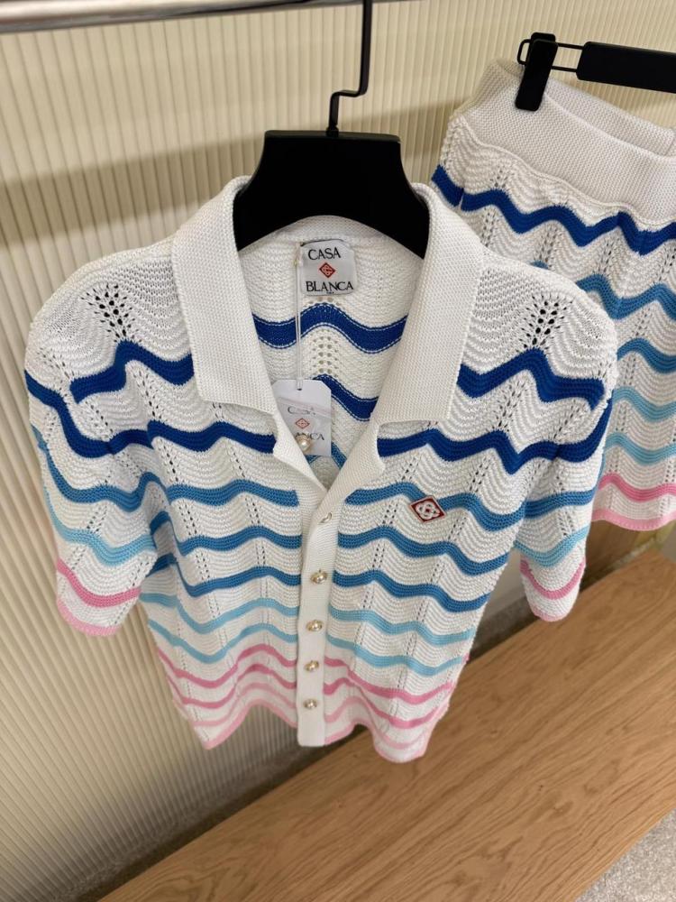 Men's Set Sport Casablanca Crochet Shorts and Striped Shirt, Blue and Pink
