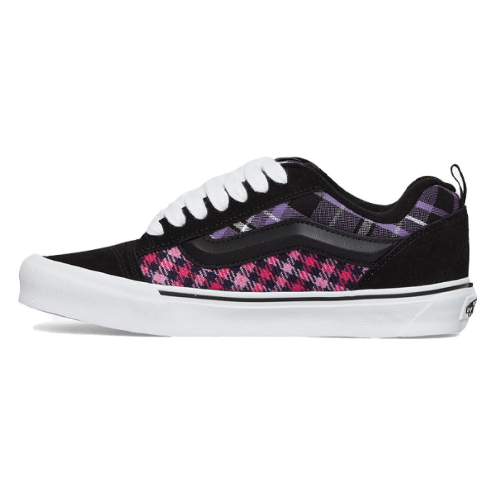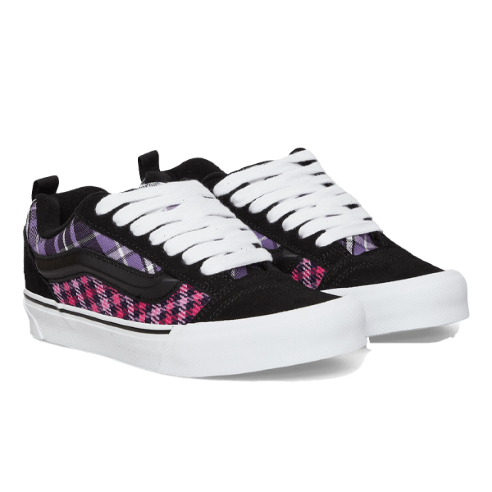 If you're looking for a sneaker that combines comfort with a modern design, the Vans Kno Skool sneaker is the perfect choice. Its distinctive checkered design in purple and fuchsia adds a vibrant and modern touch to your everyday look.