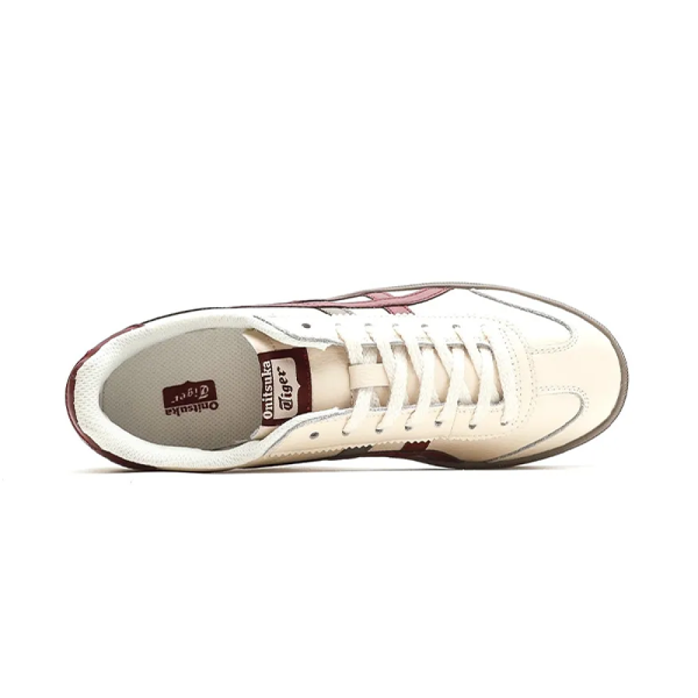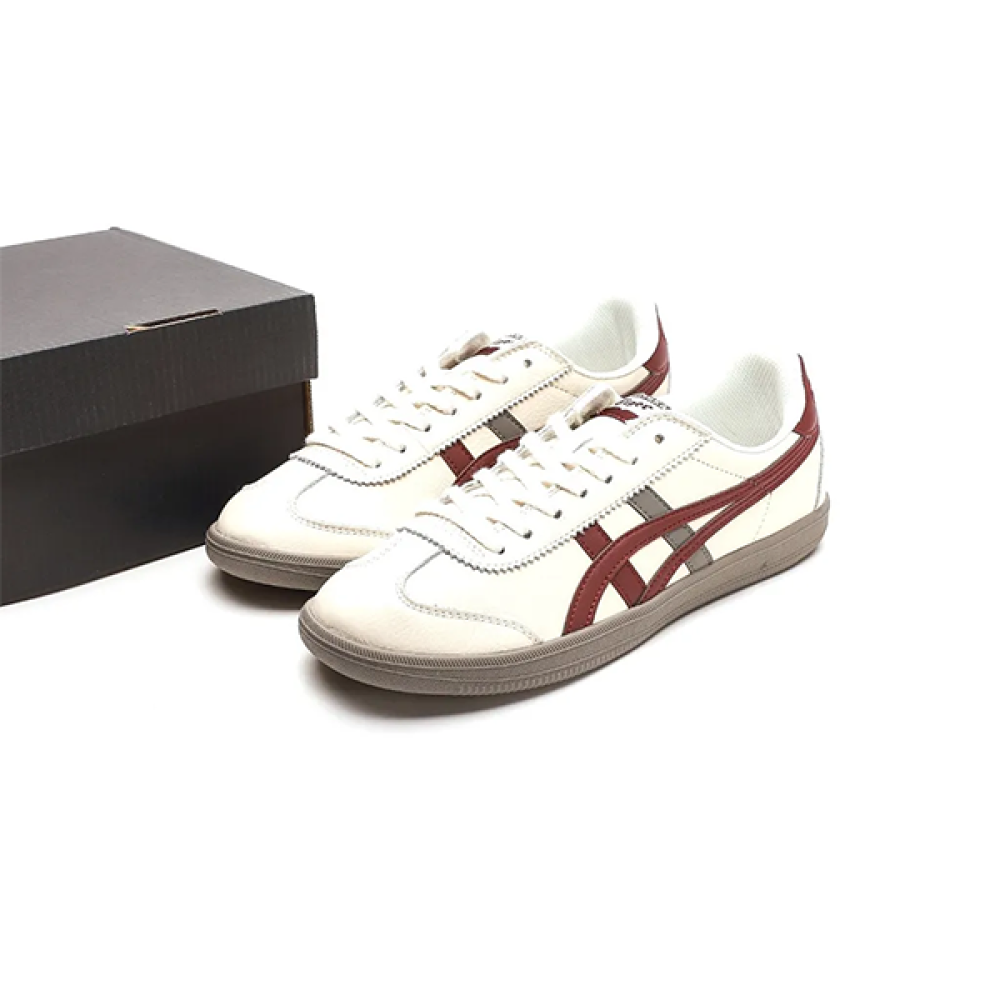 Add a touch of class to your look with the Eskies Onitsuka Tiger Tokoten sneakers in white with bold burgundy accents. These shoes embody modern design and excellent performance, making them an ideal choice for both everyday looks and sporty activities.