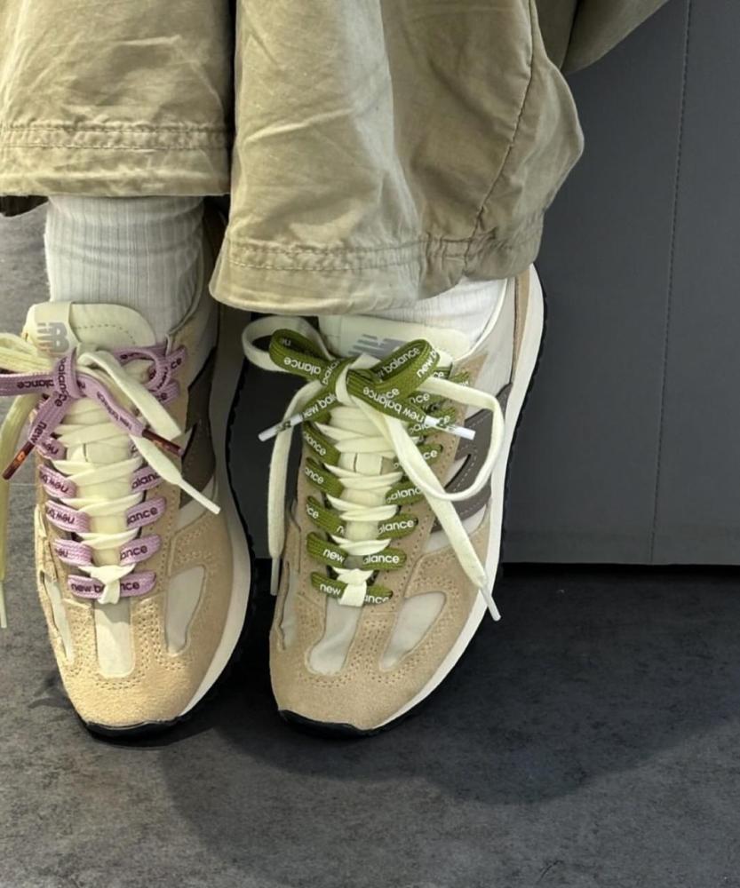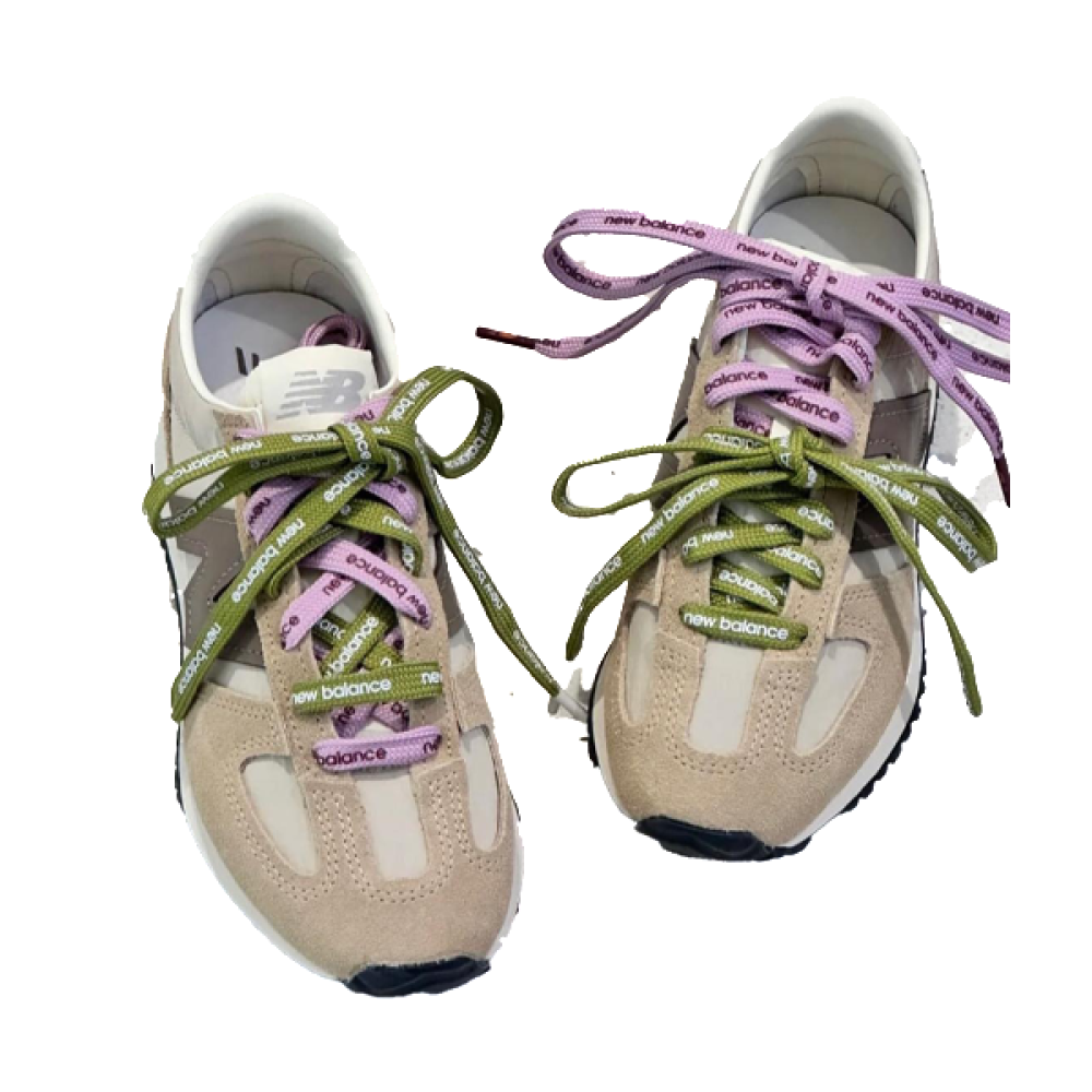انطلقي بأداء مريح وإطلالة جريئة مع شوز نيو بالانس 471 – تصميم قماشي بلون بيج ولمسة لونية مميزة بالأربطة الزهرية والخضراء.