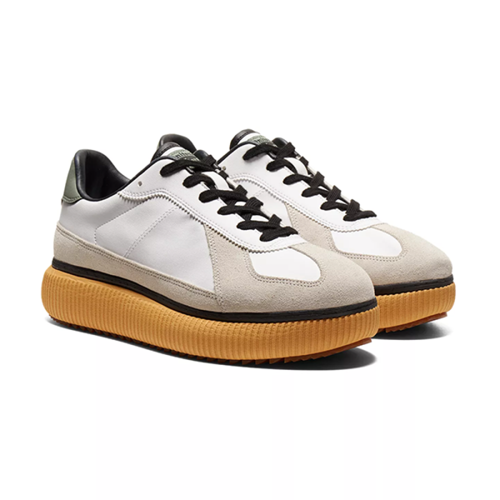 Strike the perfect balance between style and functionality with the Onitsuka Tiger Delicity white and grey platform sneaker.