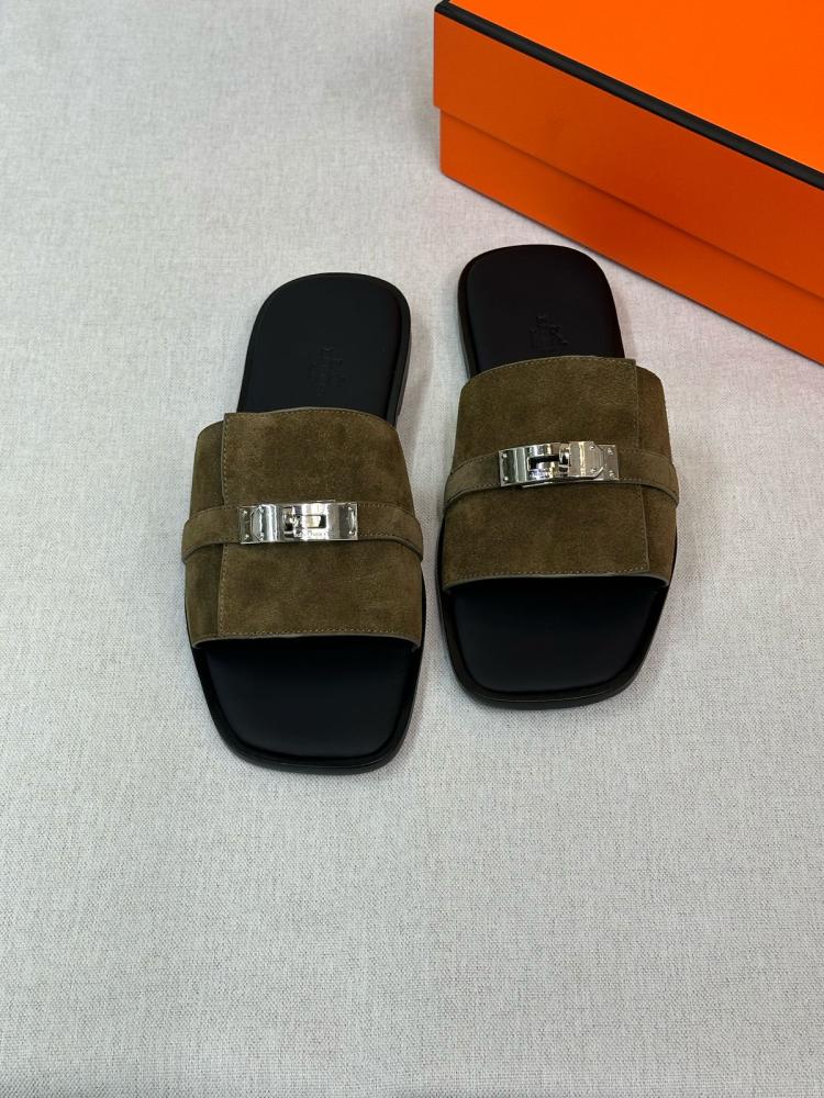 Hermes Gabriel Men's Suede Slippers in Black Olive Luxury