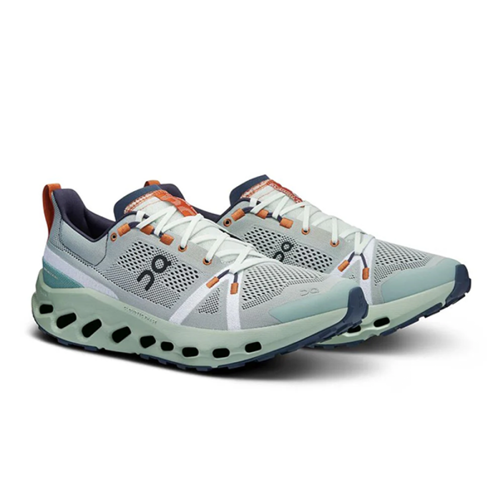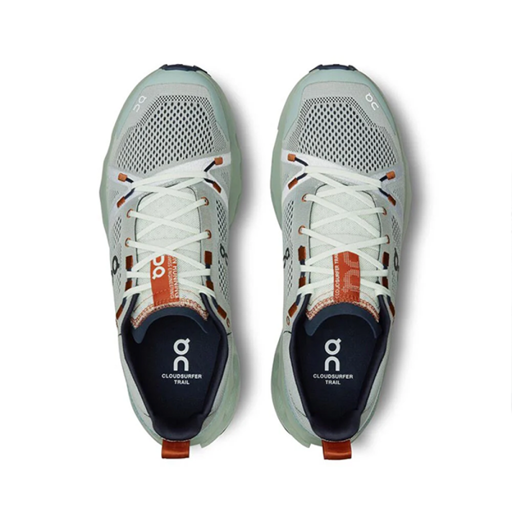 Make every step your own with the On Running Cloud Surfer green and grey shoe.