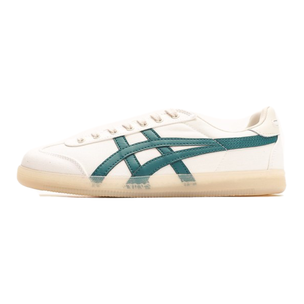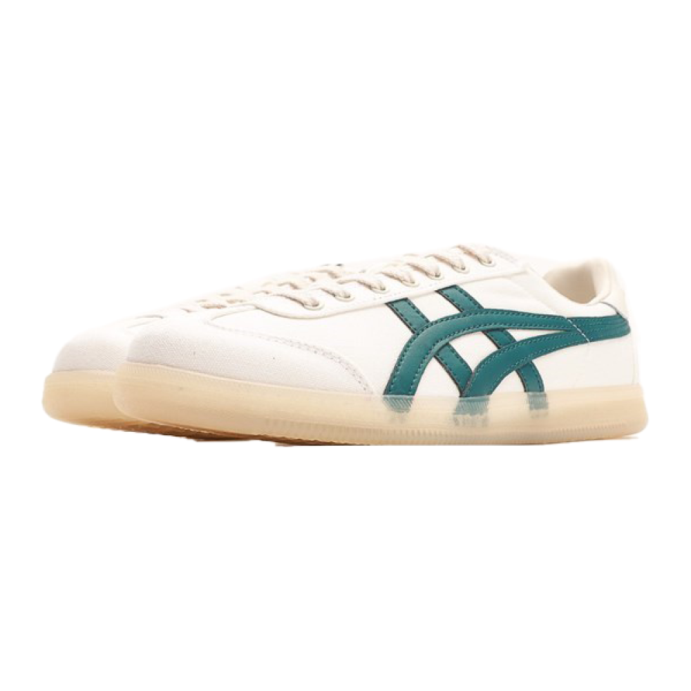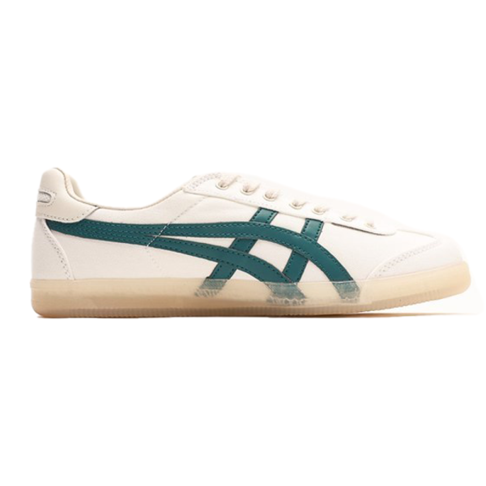 The Onitsuka Tiger Tokoten sneaker features a classic and elegant design that combines pure white with eye-catching green detailing. This shoe is perfect for those seeking a modern yet timeless look.
