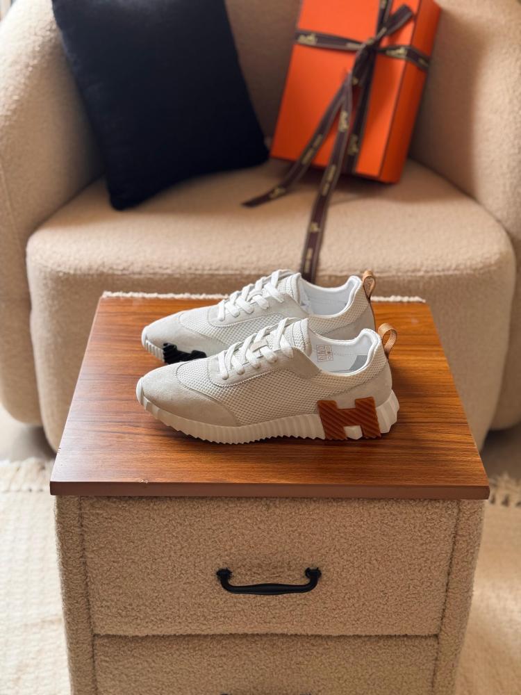 Hermes Bouncing Men's Mesh Shoes in White with Black and Brown Logo
