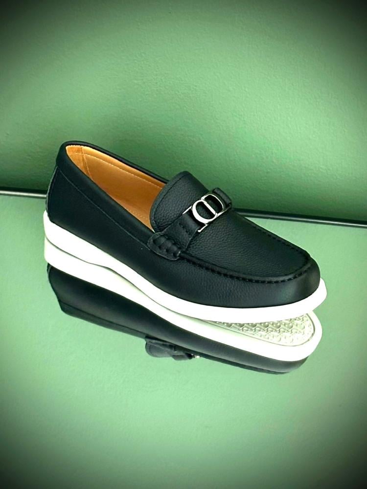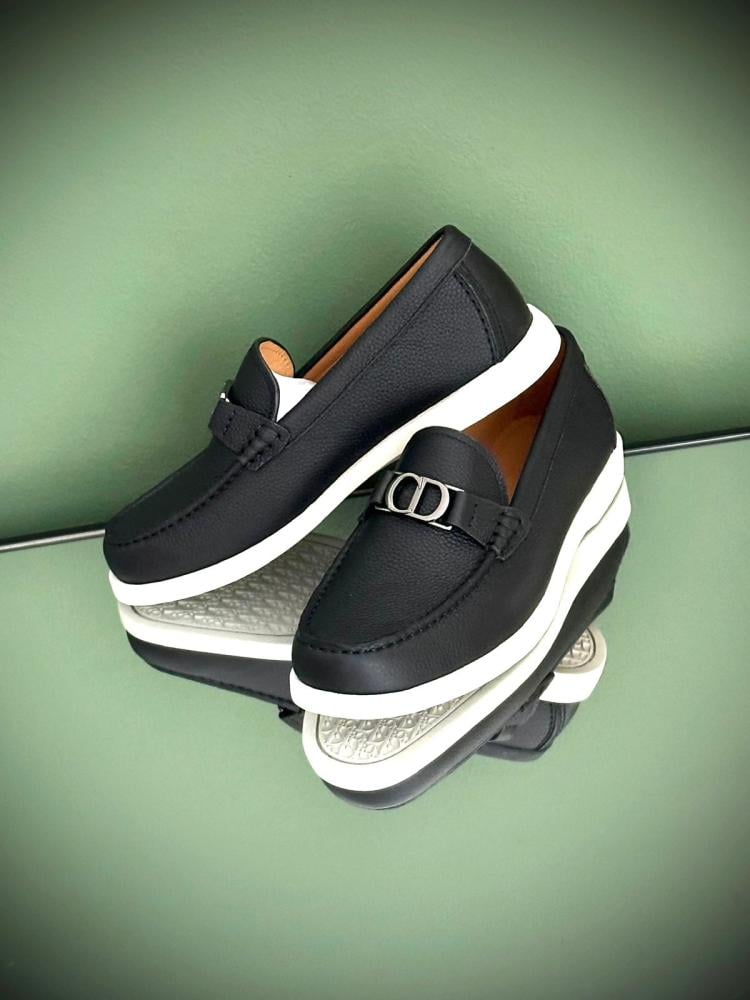 Dior men's flat leather loafers in black combine luxury and practical elegance in a classic design.