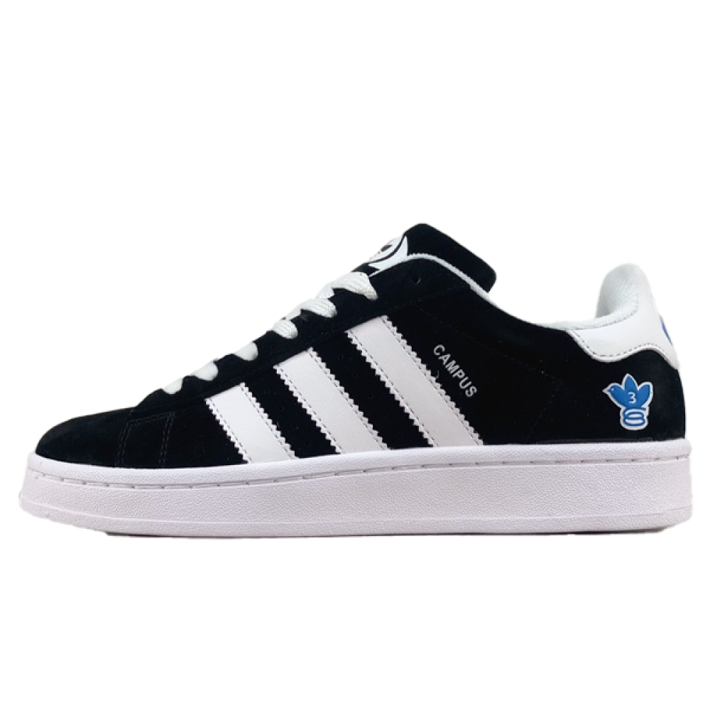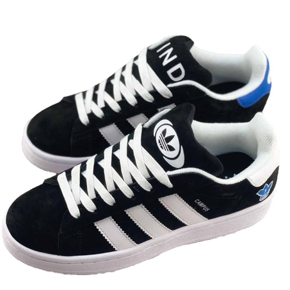 Elevate your style with the Adidas Campus Black White shoe, designed for both men and women. Featuring a classic yet elegant design, this sneaker combines a sleek black color with Adidas' iconic three-stripes, creating an eye-catching contrast.