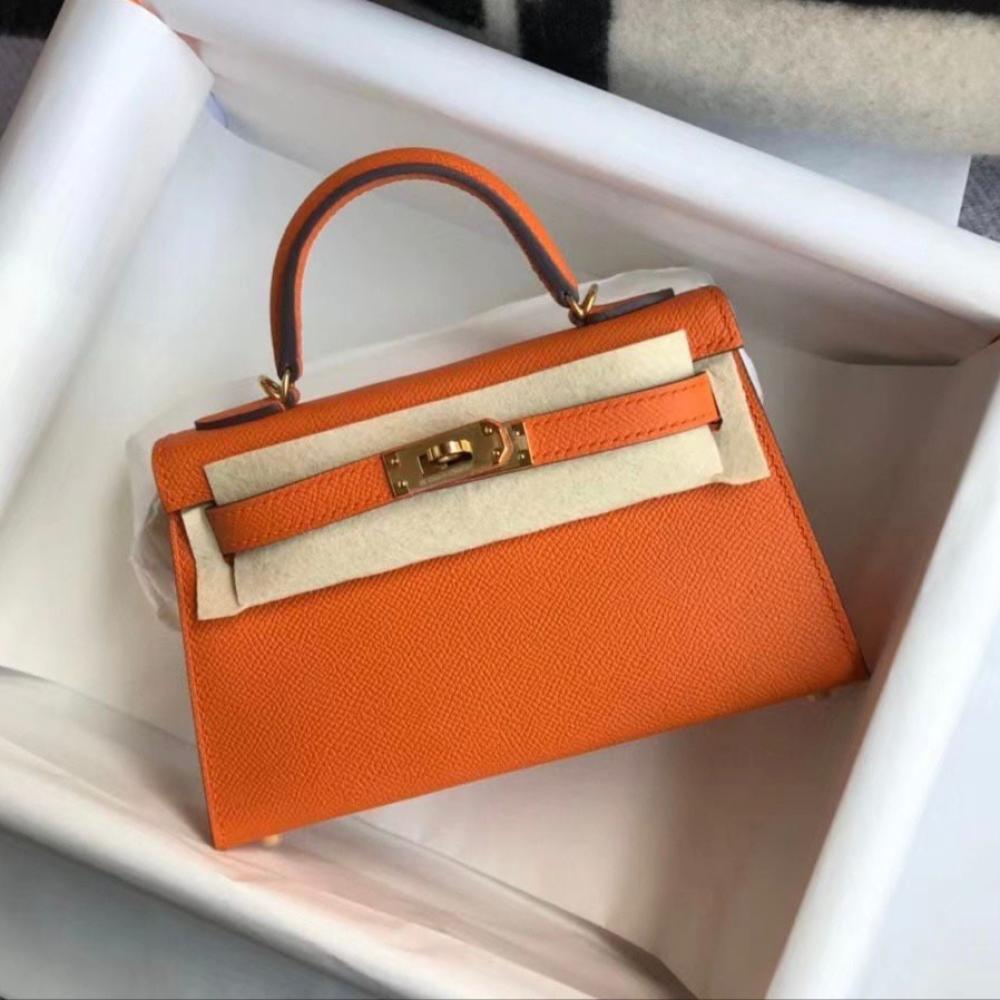 Stand out with this orange Hermes Kelly bag, now available at eseven store.