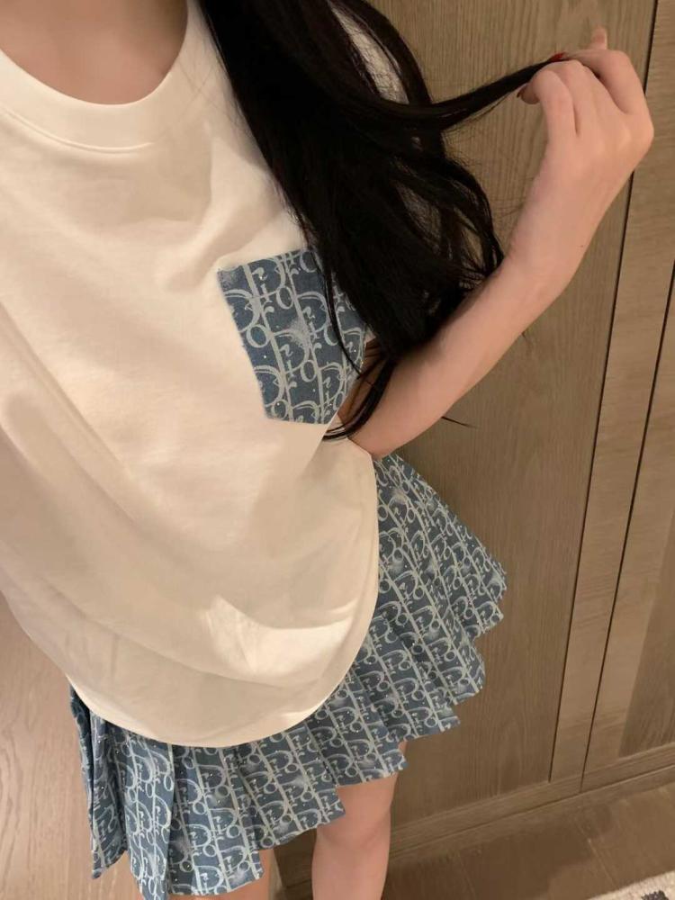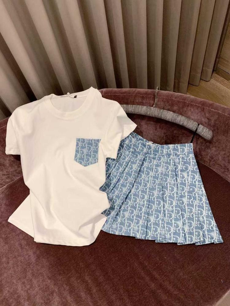 Set Dior two-piece skirt, blue skirt and white T-shirt