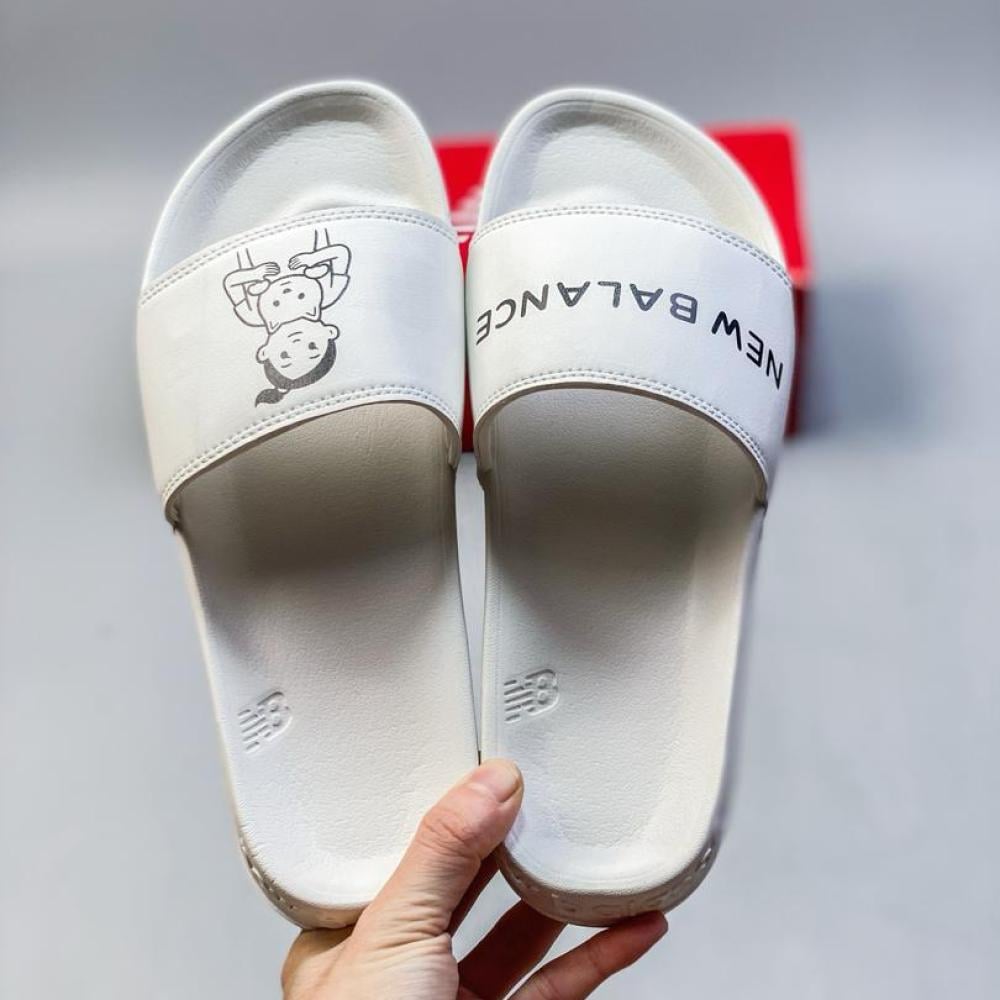 New Balance Women's White Slippers with Cute Girl and Cat Print