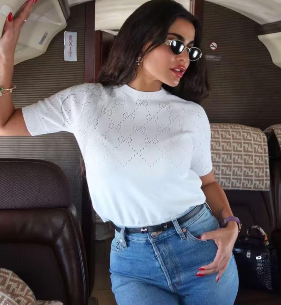 Gucci Women's White GG Logo Knitted Half Sleeve Blouse