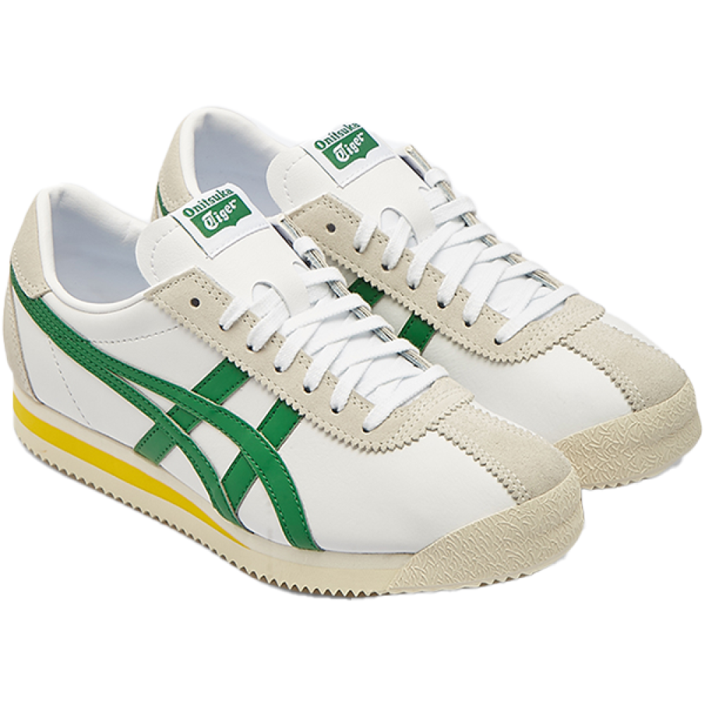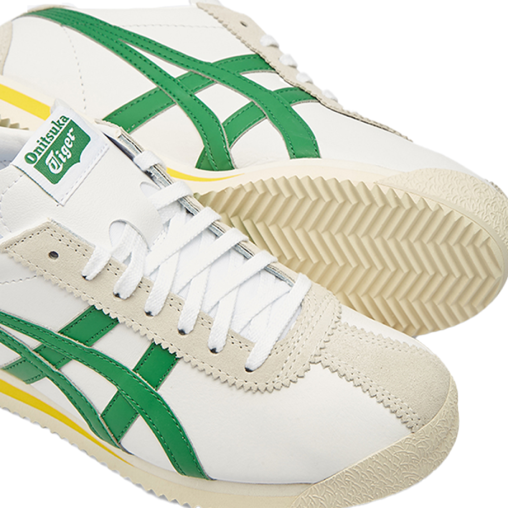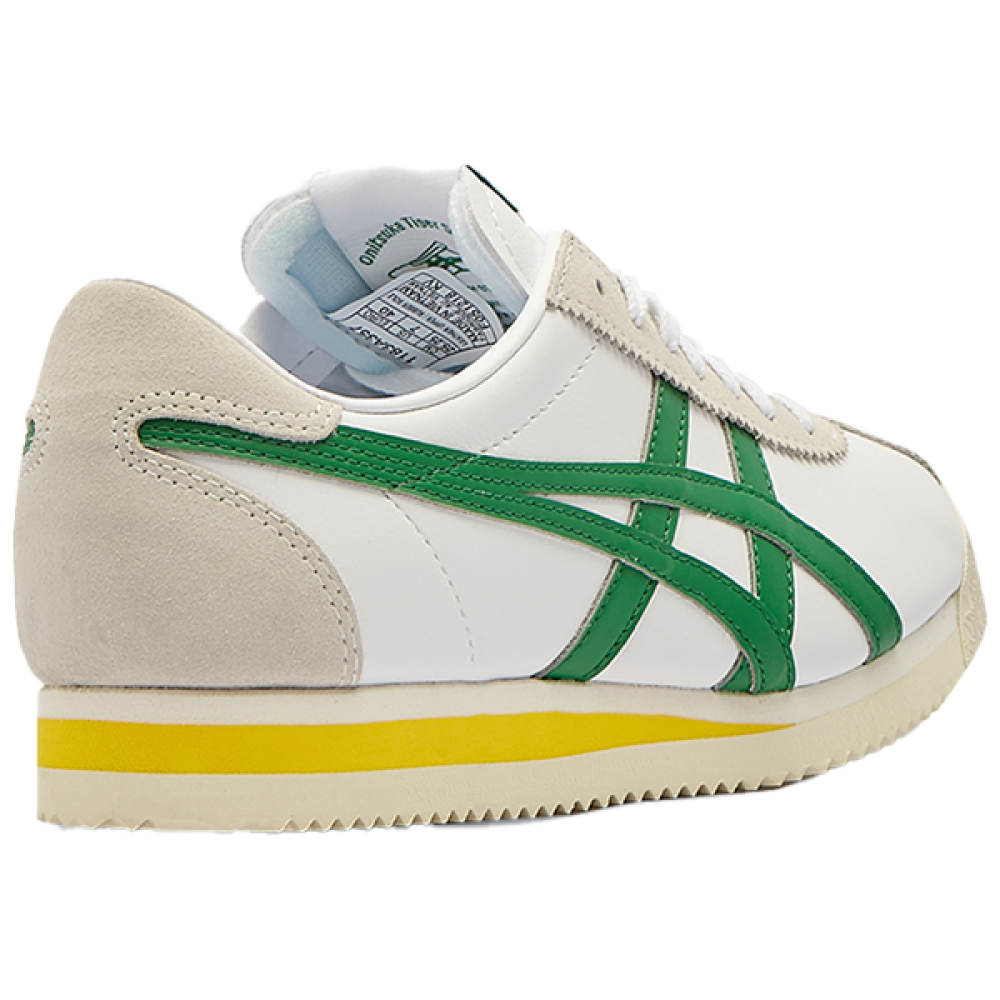 Discover elegance and vitality with the Onitsuka Tiger Corsair in white, green, and yellow, available exclusively at i7store. Featuring a classic design that reflects a timeless sporty aesthetic, this shoe is crafted from premium white leather for durability and a sleek look. Contrasting green stripes add a pop of color that catches the eye without being overpowering, while yellow accents on the sole add an unexpected touch that sets this shoe apart.