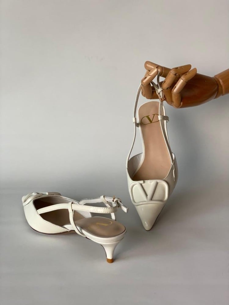 Shine with a sophisticated look with these Valentino women's low-heel pumps in a distinctive creamy white color. Featuring an elegant and comfortable design, these shoes feature the luxurious V logo at the front, adding a touch of luxury and distinction to the design.