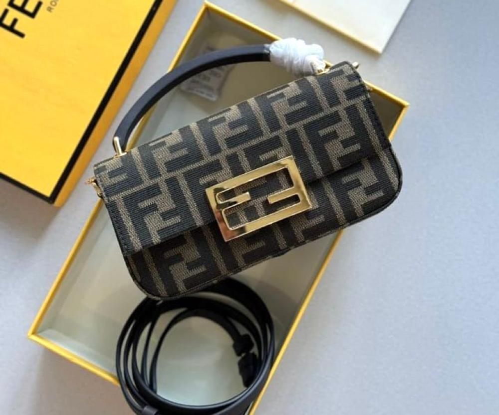 Valentino Mini FF Baguette Flap Bag in Black and Brown